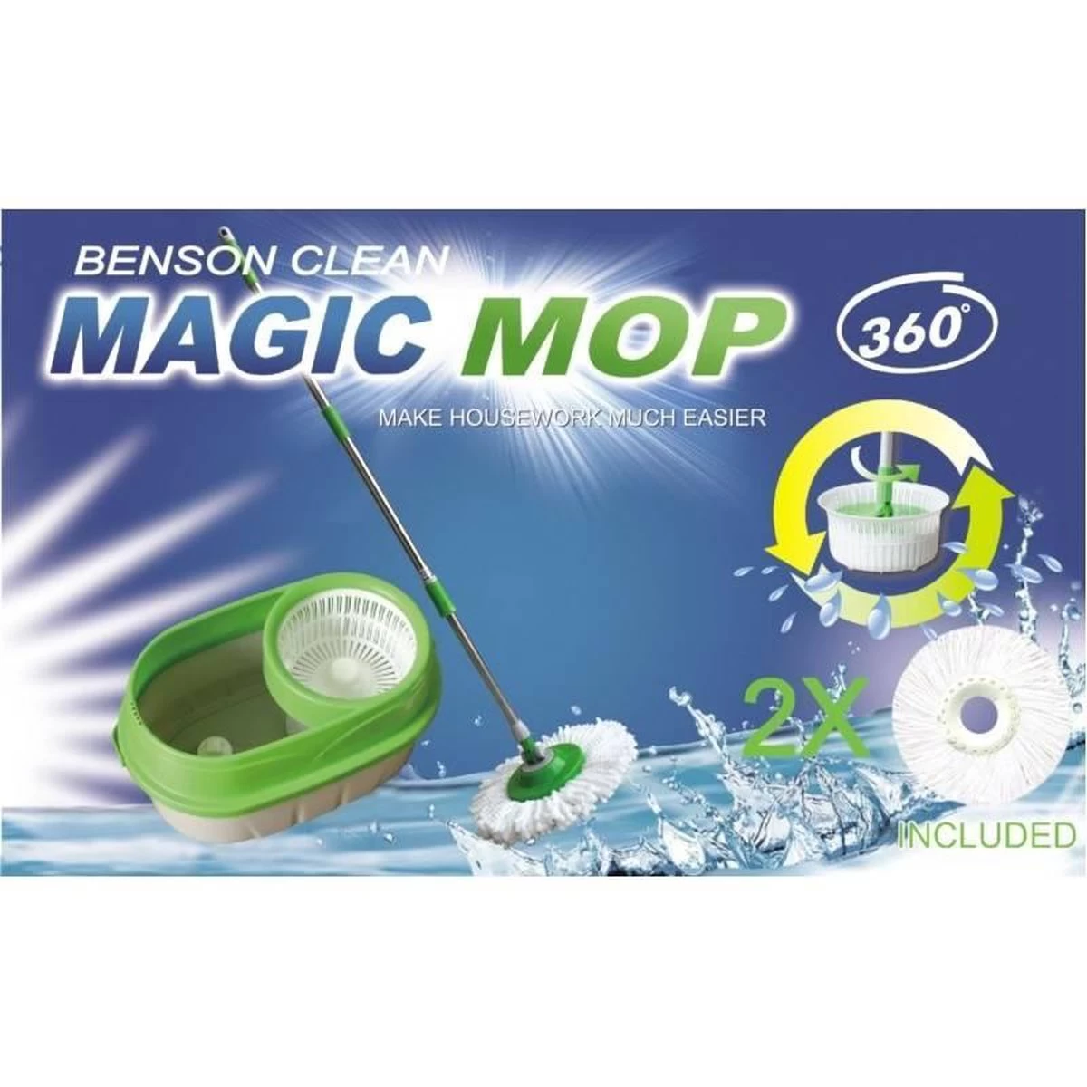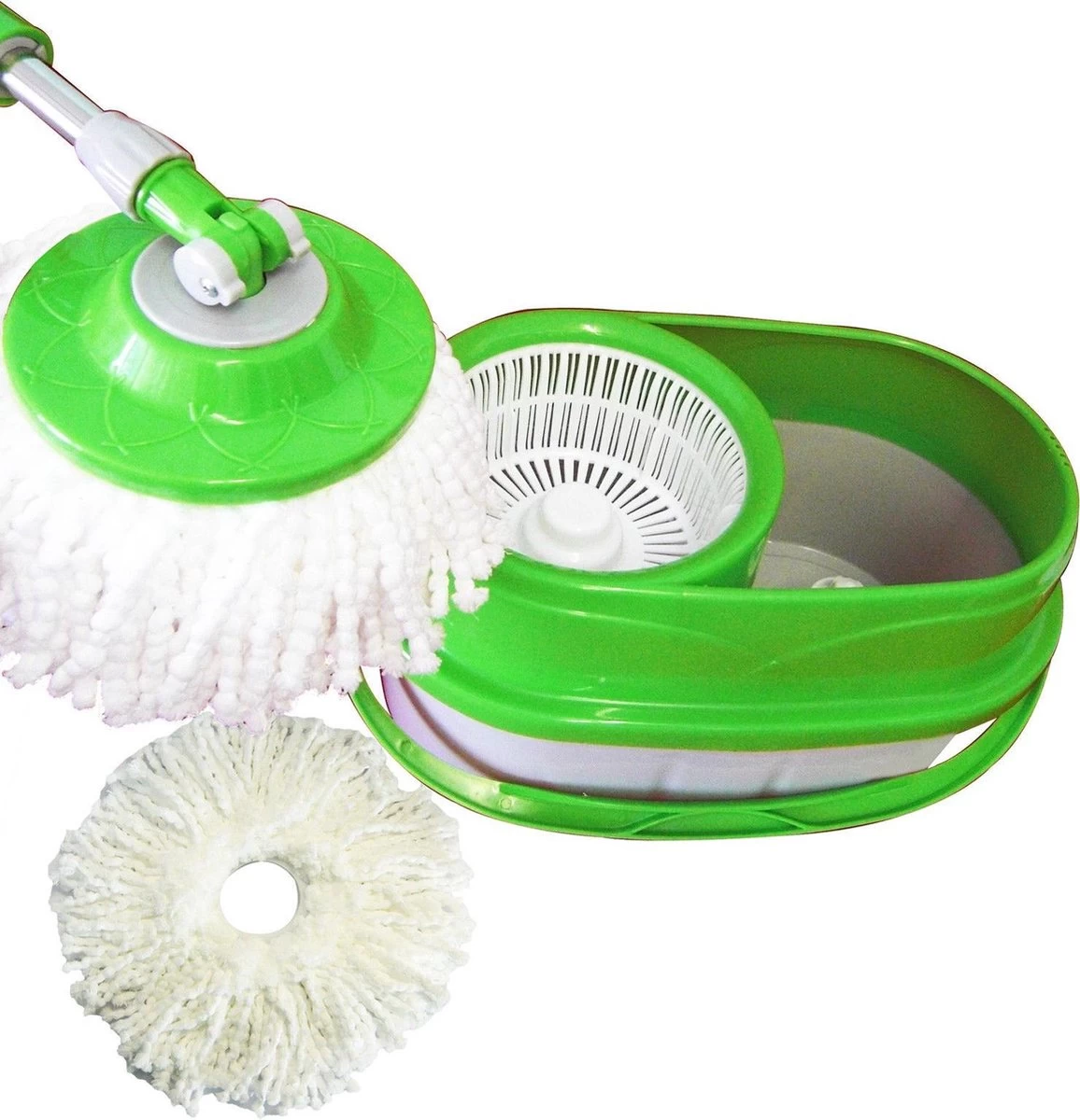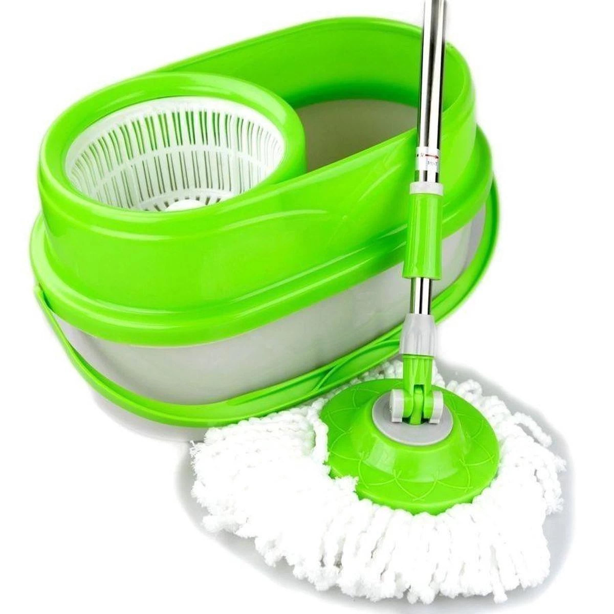 Maar het beste van de Whizz Magic Mop is de in de steel ingebouwde spinner. steel in de emmer en de supersnel draaiende spinner dwingt het overtollige water uit de kop. U kunt uw vloer dus schoonmaken zonder plassen water of druppels achter te laten! Het vervangen van het mophoofd is erg eenvoudig.