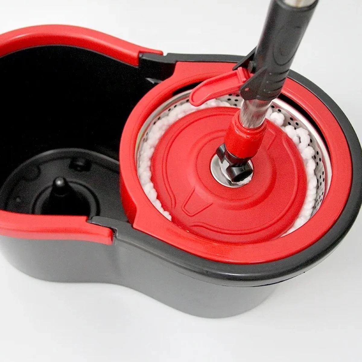Het uitwringsysteem bestaat uit een revolutionair rotatiemechanisme dat is verwerkt in de steel en in de zeef. Maar ook in de emmer zit een rotatiemechanisme verwerkt. Door de mop in het water te laten draaien, wordt deze snel schoon. Met als gevolg; heerlijk fris gedweilde vloeren in het hele huis!