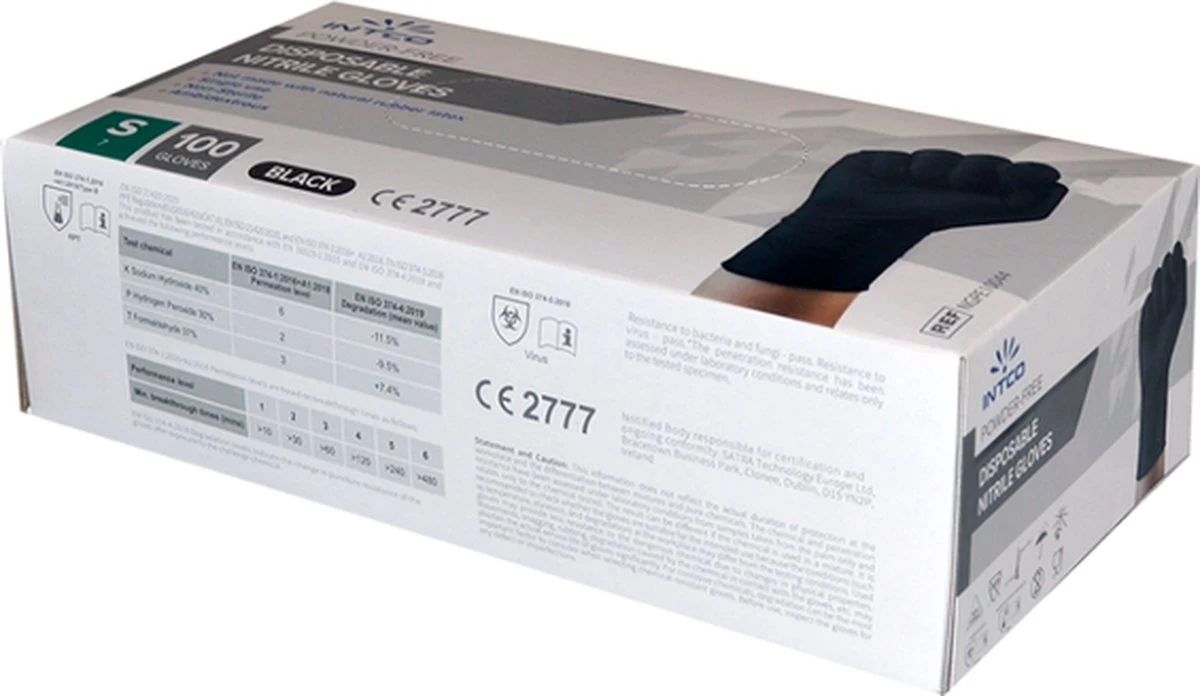 Nitril wegwerphandschoenen zijn sterker dan latex, rubber of vinyl handschoenen. Ze bieden bescherming en voorkomen besmettingsgevaar tijdens werkzaamheden waar hygiëne voorschriften belangrijk zijn. Blauwe handschoenen zorgen voor een professionele uitstraling op de werkvloer. Bovendien hebben deze handschoenen een perfecte vingergevoeligheid waarbij de gekrulde rand extra gemak biedt bij het aan- en uittrekken. Tijdens het gebruik wordt huidirritatie voorkomen doordat de nitril handschoenen latex- en poedervrij zijn. Bovendien zijn ze zowel links als rechts te dragen. Let op: niet steriel en geschikt voor eenmalig gebruik Kenmerken Materiaal: Nitril Ongepoederd & latexvrij Maat: S / 5-6 Kleur: Zwart Verpakking: 100 stuks per doos