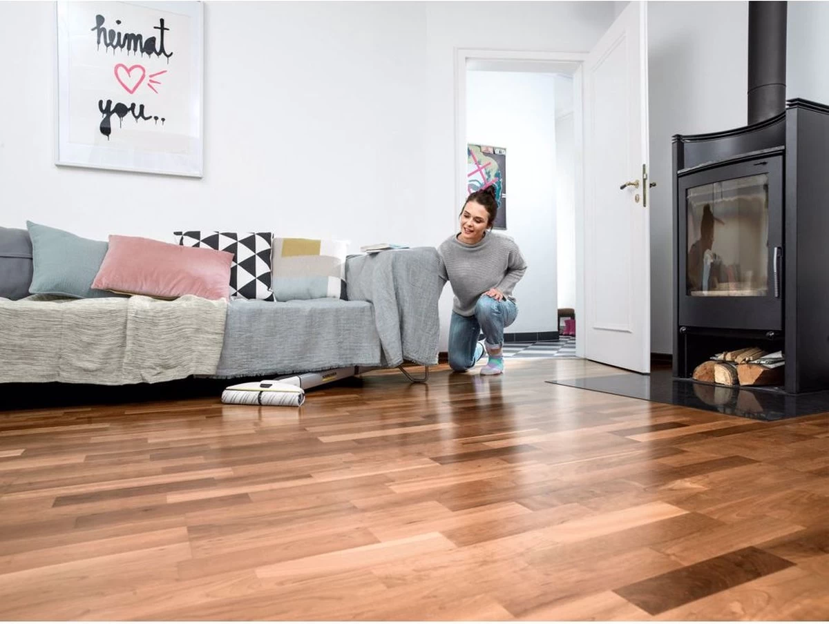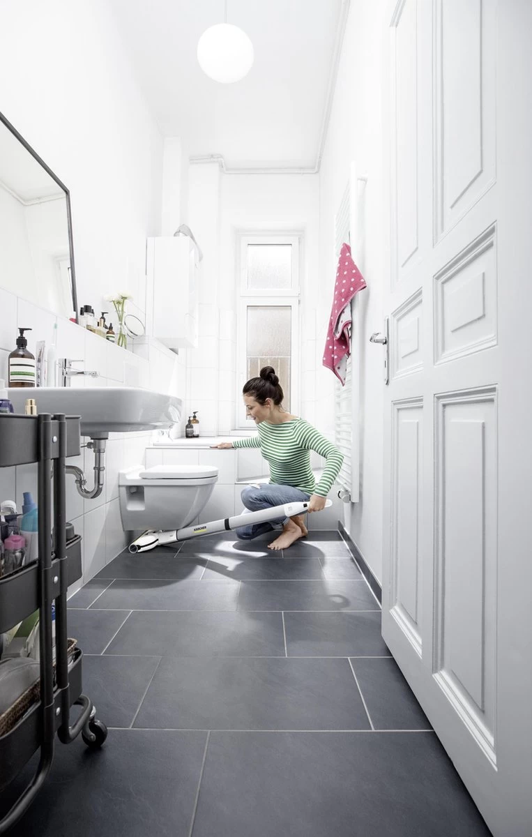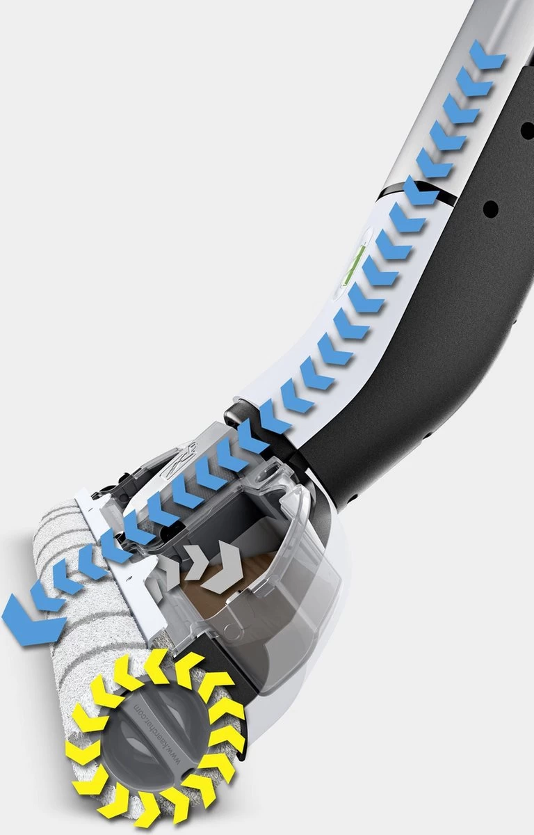 Nonstop wissen met schoon water? De FC 3 Cordless maakt het mogelijk dankzij de innovatieve zelfreinigingsfunctie. U hoeft niet meer in de weer met traditionele vloerwissers. De roterende walsborstels worden continu met schoon water bevochtigd terwijl het opgenomen vuil wordt afgevoerd naar de vuilwatertank. Vloeren zijn daarna 20 procent* schoner dan met traditionele vloerwissers. Dankzij het slanke ontwerp past de FC 3 Cordless ook perfect onder meubels en neemt hij weinig bergruimte in beslag. Met het flexibele scharnier worden ook hoeken en randen moeiteloos schoon.