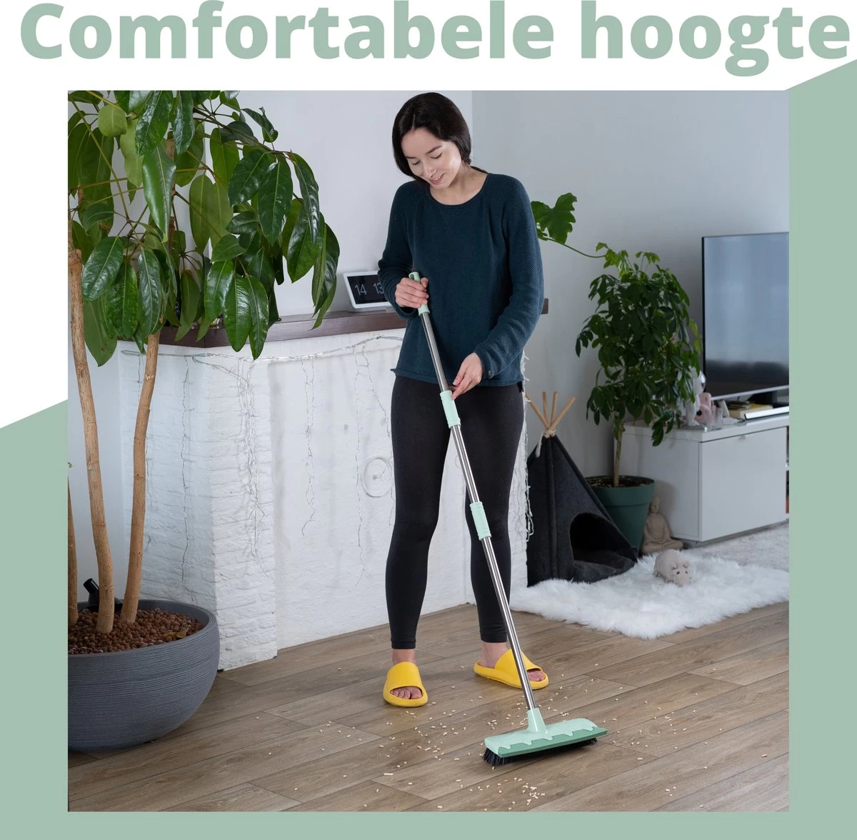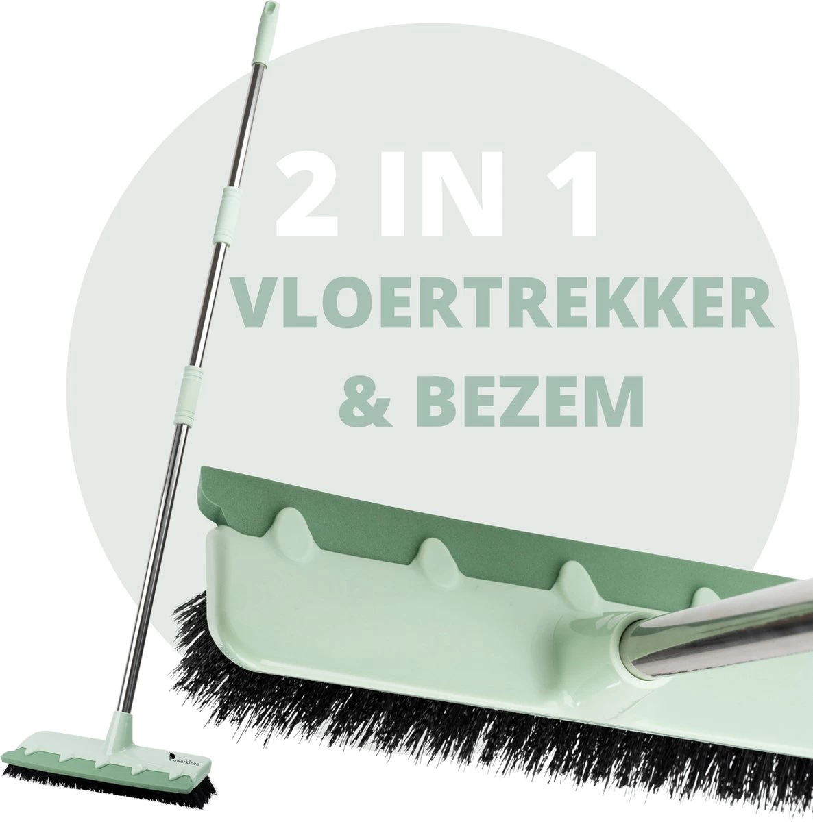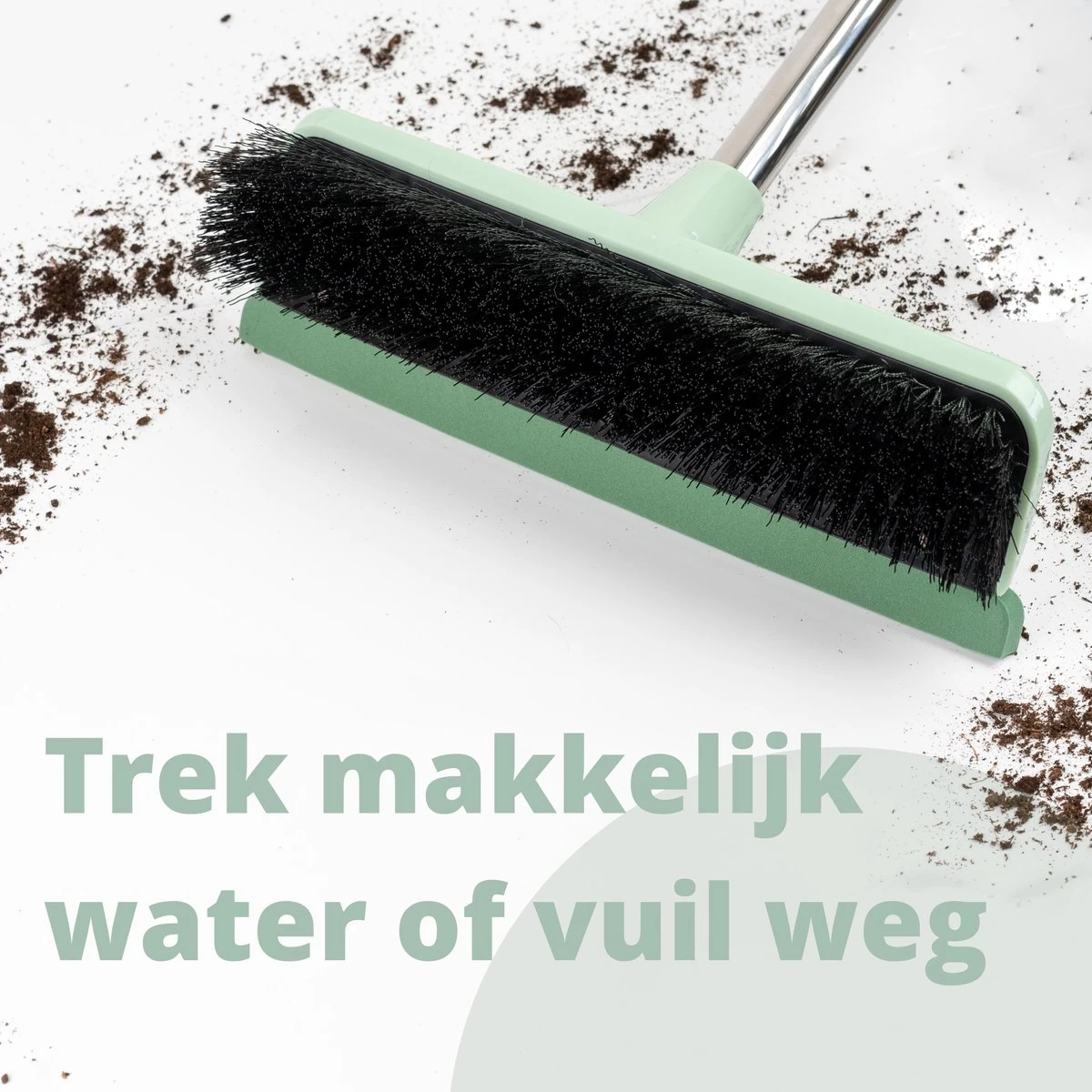 Herken jij dat ook? alle verschillende bezems in uw kast. Deze 2 in 1 is een praktische bezem die je overal in huis kunt gebruiken! Deze 2 in 1 vloertrekker & bezem is ideaal voor in de keuken, hal, badkamer en iedere andere ruimte in huis! Dankzij de harde haren zijn hardnekkige vlekken eenvoudig te verwijderen en dankzij de vloertrekker kun je overtollig water makkelijk wegtrekken.