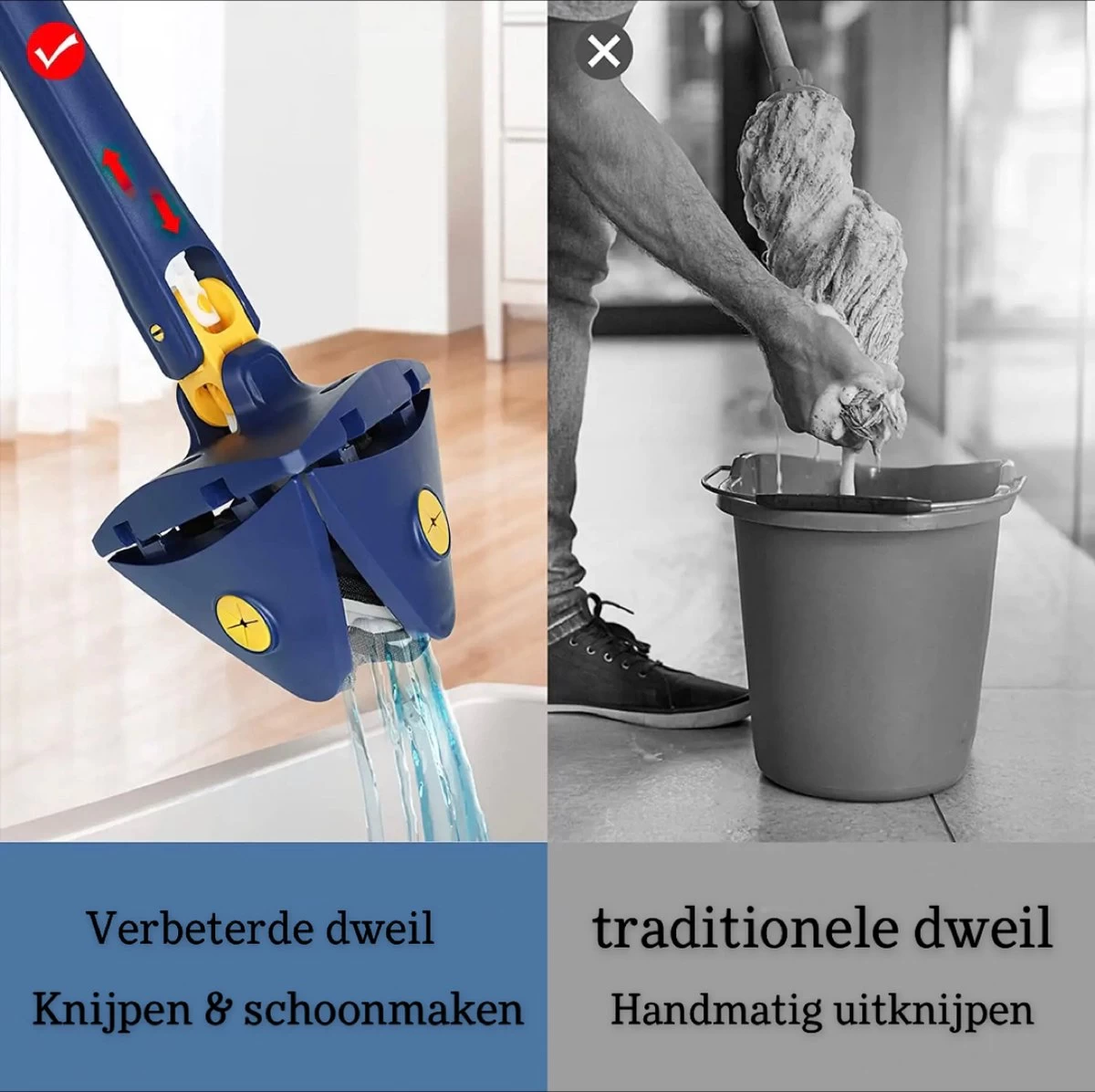 Deze driehoekige dweil met wringer is een uitstekende tool voor de dagelijkse reiniging van je vloeren, muren en moeilijk bereikbare hoeken. Met een 360° roterende driehoekige kop is deze dweil in staat om elke hoek gemakkelijk te reinigen, zelfs de meest moeilijk bereikbare plekken. De verstelbare dweil zorgt voor meer comfort en efficiëntie tijdens het schoonmaken.