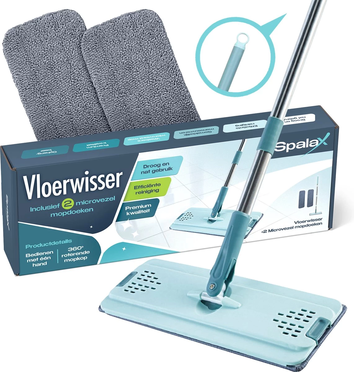 Geniet van de schoonste vloeren met de sterk absorberende Spalax microvezel dweil. Gebruik de ultralichte vloermop om de vloer droog of nat te dweilen. De 360° roterende mopkop en de verstelbare dweilstok stellen je in staat moeiteloos alle plekken te bereiken.
