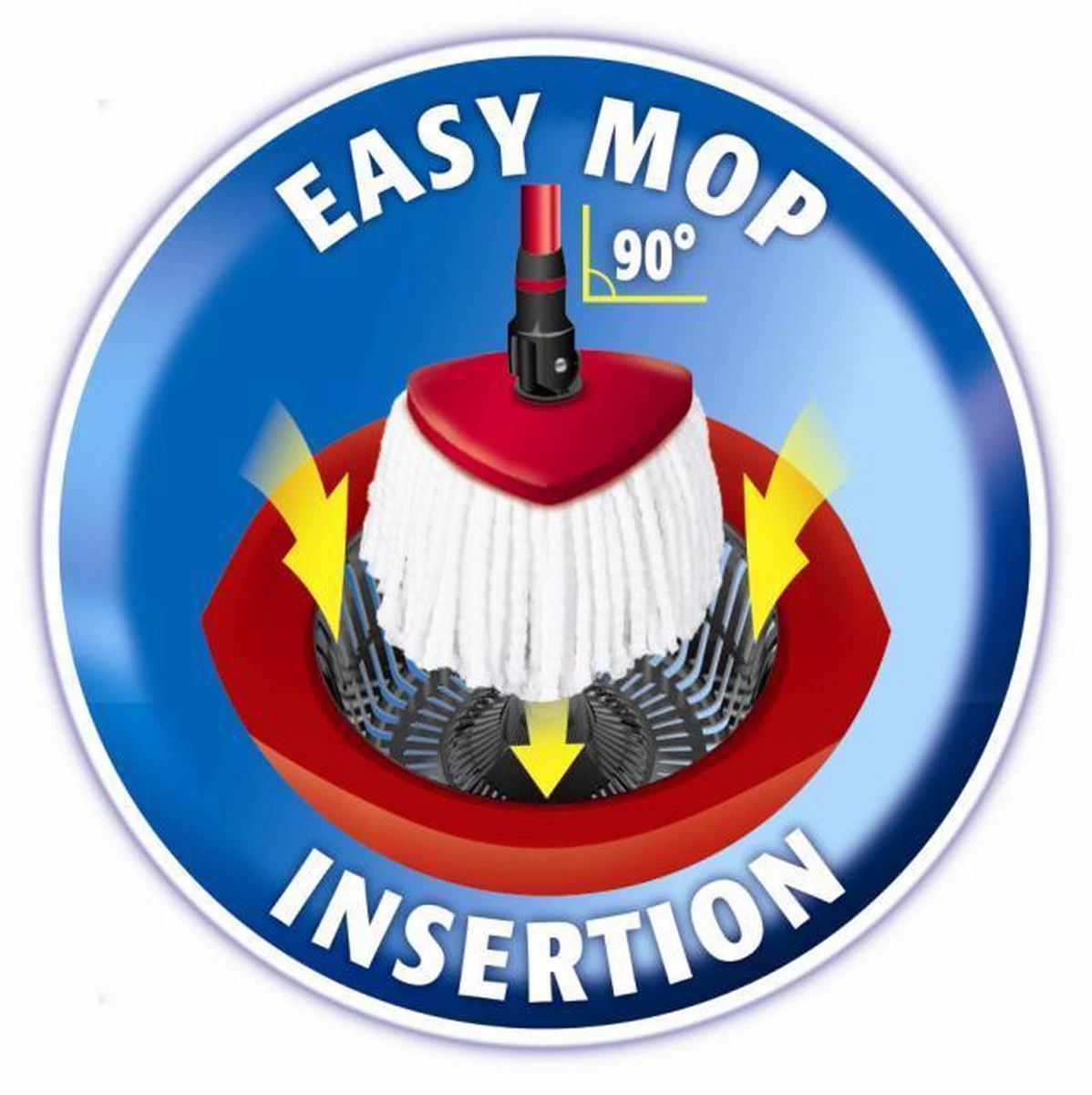De volledige kit voor een doeltreffende en makkelijke schoonmaak :- Franjes in microvezel – Emmer met roterende pers – Pers met extra bescherming – Driehoekige vorm