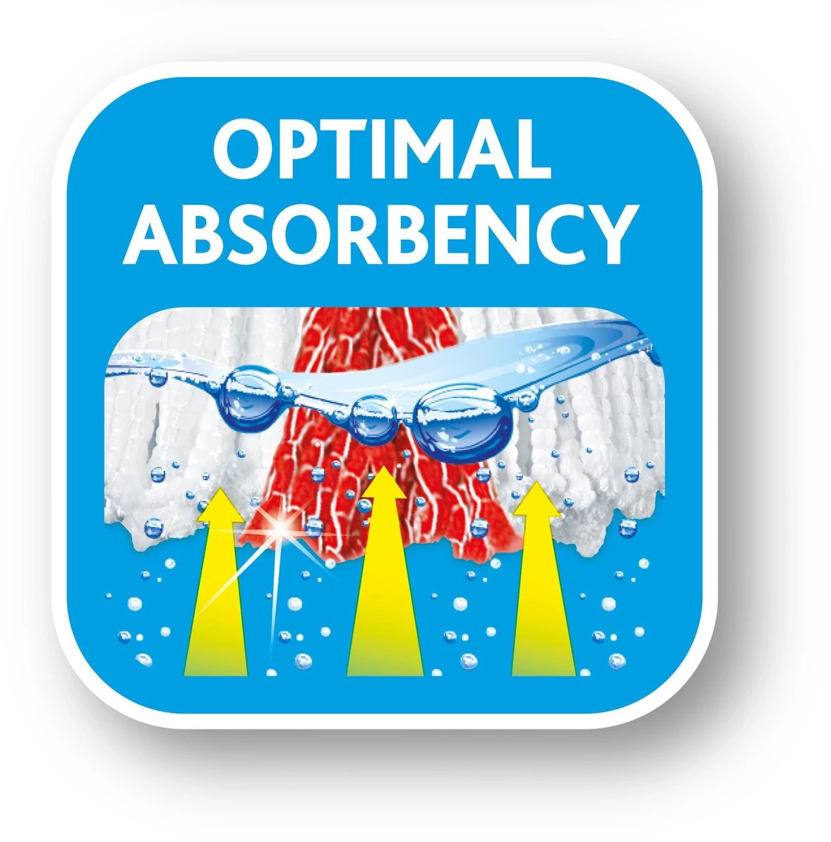 De pad bevat 2 soorten draden: witten draden in microvezels om te absorberen en te ontvetten, en rode draden die 20% meer vuil opnemen dan klassieke draden*.