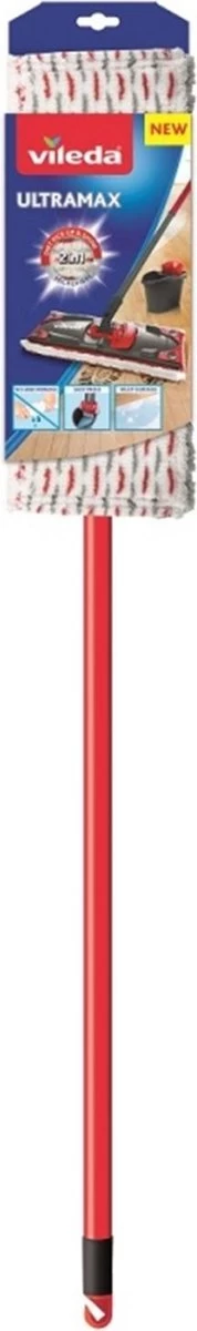 Vileda heeft NEW geïntroduceerd voor nog meer comfort bij het gebruik van het ULTRAMAX-systeem – dankzij de versterkte en verbeterde bevestiging van de mopcoating kunt u de handdoek en emmer uitwringen.