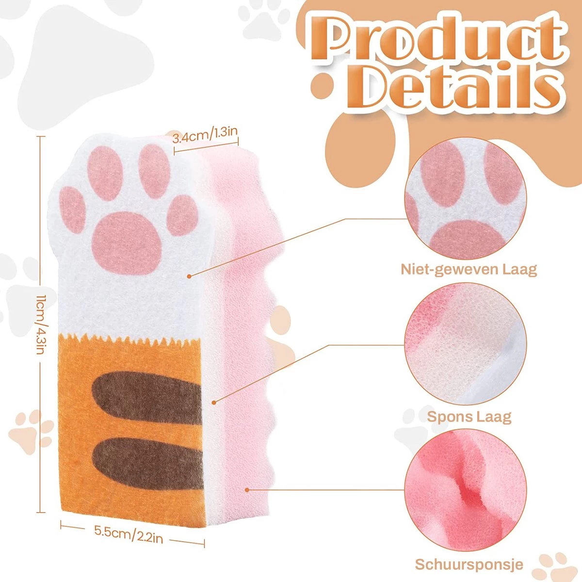 Origineel design De spons heeft een vrolijk, origineel design met een schattige kattenpootafdruk. Niet alleen leuk voor kattenliefhebbers, want iedereen wordt vrolijk van deze spons! De schuurspons heeft een fijn formaat, waardoor die perfect in je hand past.